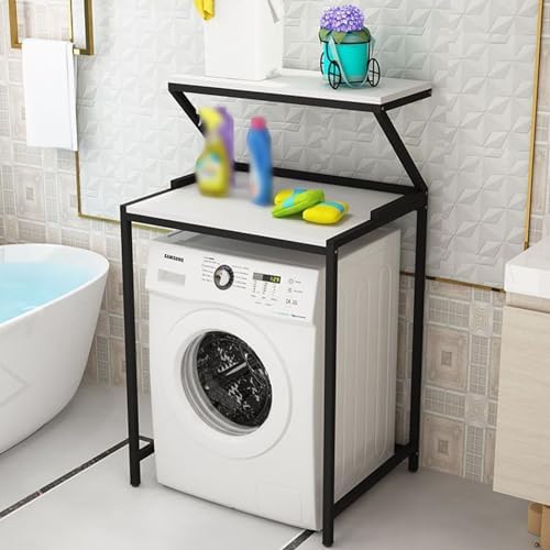 Étagère lave-linge cadre noir plateau blanc